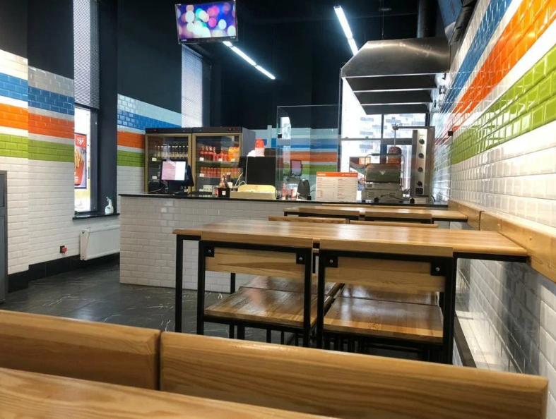 Где-то 5 минут от выхода. Додо Пицца. Вот там я была буквально неделю назад, грелась пока мне колеса переобували. Внутри довольно мило, кофе точно есть.