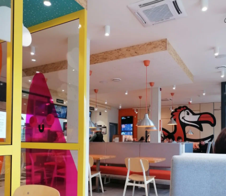 Маленькое кафе под названием Чарли Чикен. Я там, правда, не была, так как мне нельзя есть фаст-фуд, но кофе, надеюсь они продают.