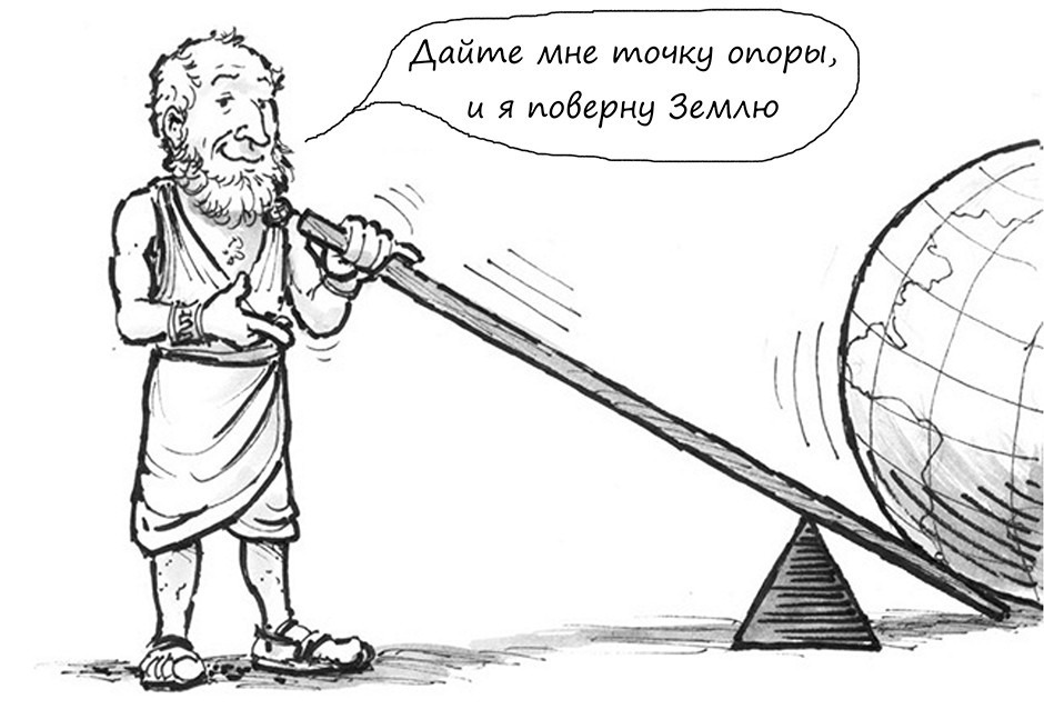 История выражения. Говорят, что древнегреческий ученый и философ Архимед после открытия рычага произнес фразу, ставшую впоследствии крылатой: «Дай мне где встать, и я сдвину Землю». В наше время это выражение видоизменилось: «Дайте мне точку опоры, и я переверну мир!»
