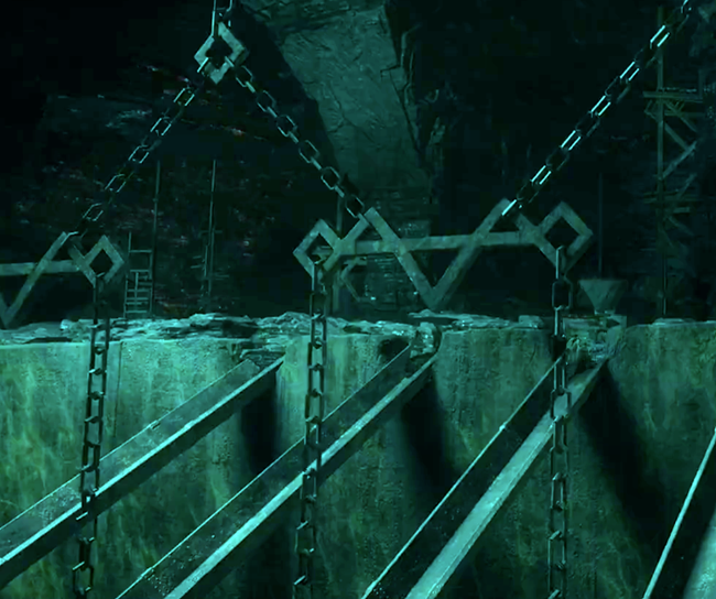 В то время пока шли переговоры, первая группа продвигалась почти в полной темноте по нижнему уровню, освещая себе дорогу лишь факелами, которые наколдовали волшебники для эльфов. Сами же они держали зажженные люмосы. Коридор, по которому они шли закончился. Искатели оказались в большом зале с какими-то желобами и непонятными конструкциями на втором ярусе той стены, откуда эти желоба и выходили.