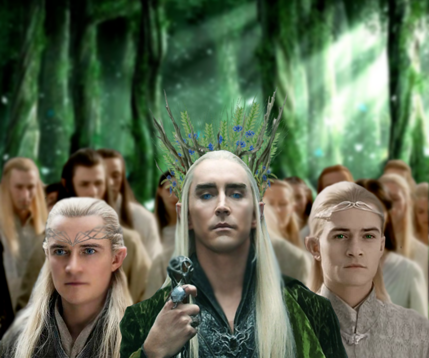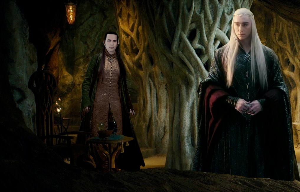 И вдруг все стихло, а потом зазвучала красивая мелодия и на поляне появился Трандуил в сопровождении своих сыновей и еще нескольких эльфов. Таур и принцы заняли свои места за центральным столом.