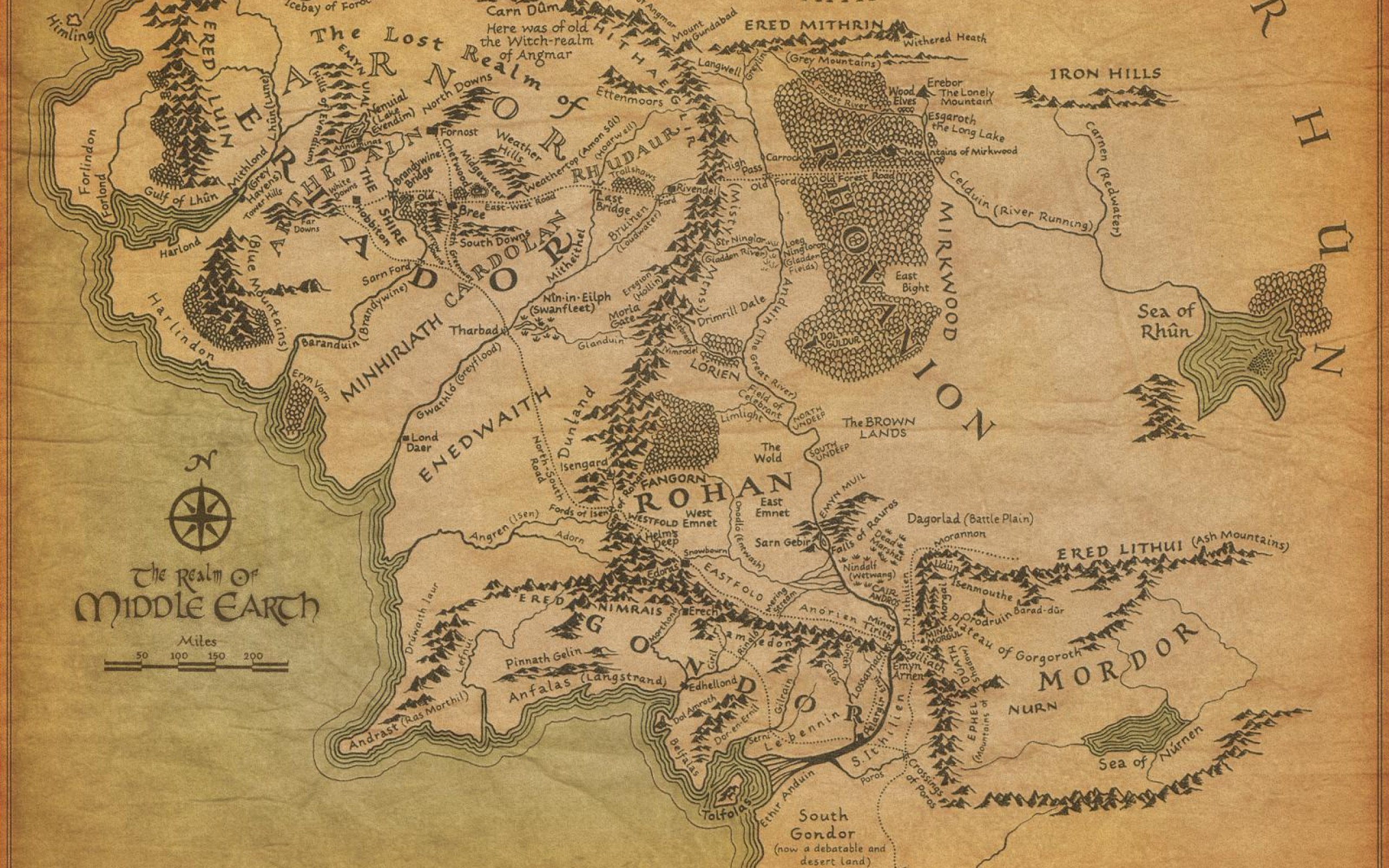 — Море Рун или Восточное Море. Когда-то действительно было морем, а сейчас это большое, но соленое озеро, один берег которого находится на западе Дорвиниона, а другой в восточной части Эред Литуи. Когда Гондор был в силе все земли от Минас Тирита до моря Рун были под его контролем. Но сейчас истерлинги заселили часть этих земель и оттуда совершают набеги на Гондор.