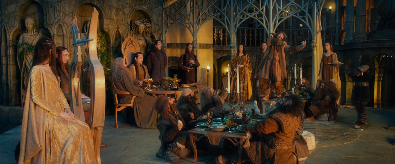 Гномы были рады увидится с волшебниками. Еще больше был рад Бильбо Бэггинс, который дезертировал от стола детей Дурина к магам и пристроился рядом с Гарри.