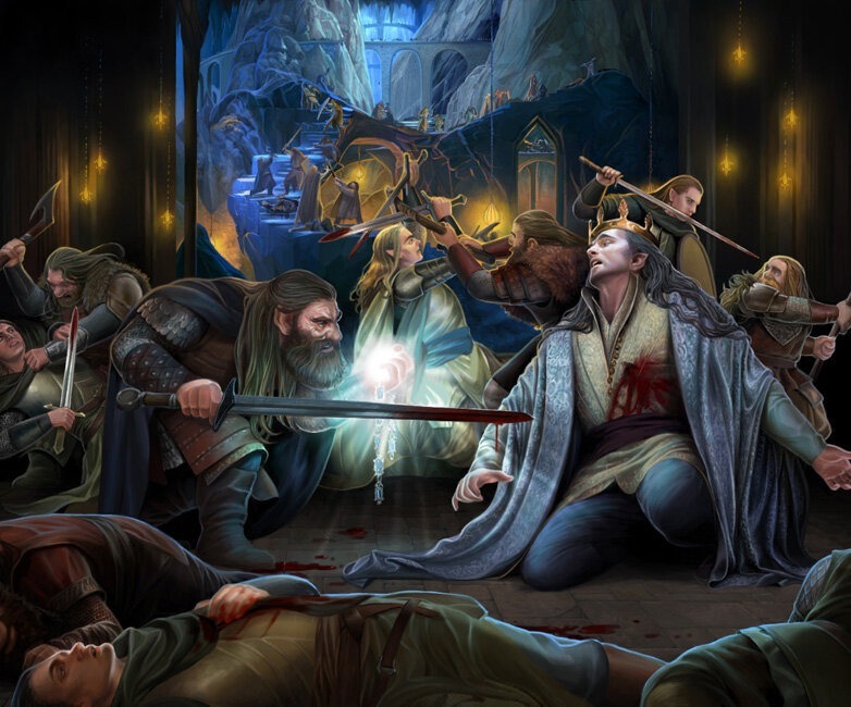 Торин призвал нас сплотиться. Мы собрались с силами и отбросили орков назад. Наш враг был побеждён, но не было ни пиршества, ни радостных песен в ту ночь. Погибших было столько, что их не успевали оплакивать. Немногие из нас выжили. И тогда я подумал: «Вот тот, за кем я последую. Кого я готов назвать королём».