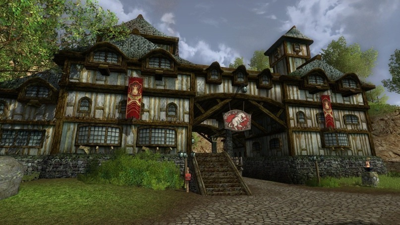 Ворота открылись и путники вступили на территорию Бри. Городок, или поселок, состоял из одно- и двухэтажных домов, нижняя часть которых была каменной, а верхняя деревянной. Улицы были вымощены серым камнем. Уже было глубоко послеобеденное время и, сжалившись над хоббитом, все решили сначала встать на постой, а затем каждый займется своими делами и решит их обязательно сегодня, а это значит — очень быстро, чтобы завтра продолжить путь. Путешественники прошли вперед по улице, где цепкий взгляд волшебников отметил то ли кузницу, то ли оружейную лавку и что-то вроде магазина всякой всячины, а за ними нашелся старинный трактир «Гарцующий Пони», который был знаменит на весь Тракт.