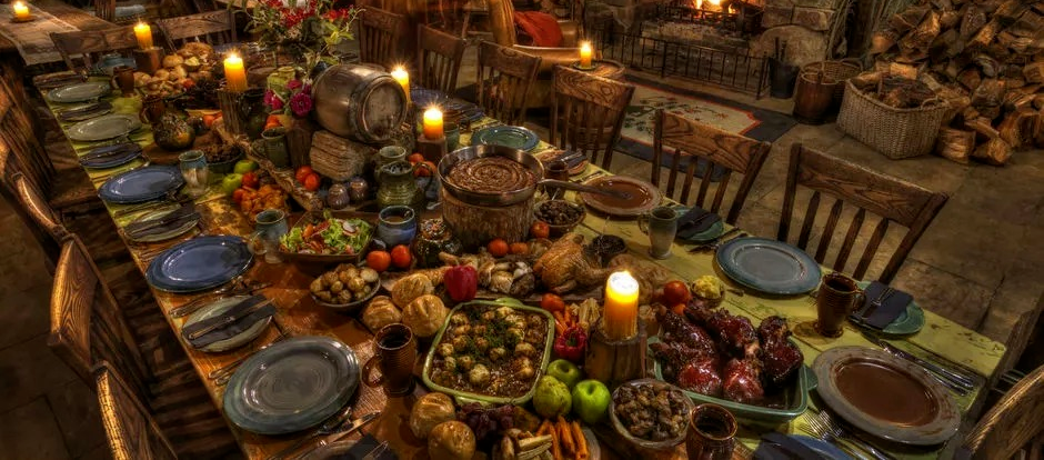 После покупок волшебники вернулись в таверну, где по тихому наджеминили еще тысячу золотых, чтобы не думать о расходах в дороге и не смущать гномов таким колдовством. Затем отправились в общий зал, где, как им уже сообщил Баттербур, их ждал накрытый стол. Волшебники стали разглядывать главное помещение трактира. По левую руку от входа располагалась стойка трактирщика, чуть дальше за ней целая стена из больших бочек. Столы в зале были и длинные и квадратные, почти все они сейчас уже были заняты самым разнообразным народом, который пил, ел, курил, играл в карты, музицировал и пел. Были тут и местные жители, которых можно было отличить от путешественников по опрятному виду и беззаботности, и разного рода путешественники: люди, эльфы, гномы и хоббиты. А их компанию ожидал богато накрытый стол.