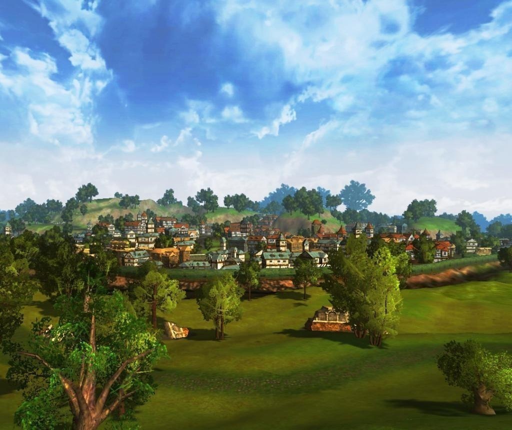 Закончив трапезничать команда снова двинулась в путь. Лес закончился, слева и справа от дороги потянулись поля, а впереди виднелись два больших холма. У подножия левого виднелась группа домов.