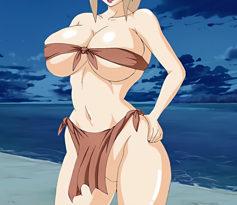 Лицом я прижался к груди Цунаде, вдыхая возбуждающий аромат и спустил руку ниже, касаясь ладонью её гладкого лобка. Нежно помассировав его, пальцы достигли увлажнённой щели. Осторожно и не спеша я просунул один палец внутрь самого интимного места.