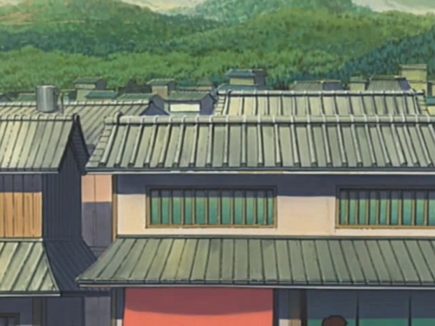 Подходя ближе к нужному дому, протоптанная земля сменилась каменной дорожкой, когда мы обошли декоративный каменный забор. Длинный двухэтажный дом в почти классическом японском стиле. Фасад из тёмного дерева с белыми бумажными стенами, изогнутая по краям крыша покрытая черепицей. Рядом красовался прудик, сад, каменные фонари и конечно же небольшой "чайный домик". Такие домики в стране Чая были разбросаны повсюду.