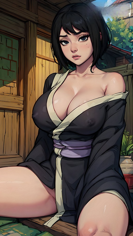 Покрасневшая от саке Цунаде сидела за столом, едва удерживая равновесие. Её помятое кимоно немного съехало, обнажая плечи и открывая гораздо больший вырез на соблазнительную ложбинку огромных полушарий. Пояс на талии ослаб, позволяя кимоно слегка распахнуться. Штаны Цунаде сползли, открывая вид на сочные бёдра. Так и хотелось зайти к ней за спину и… насладиться видом.