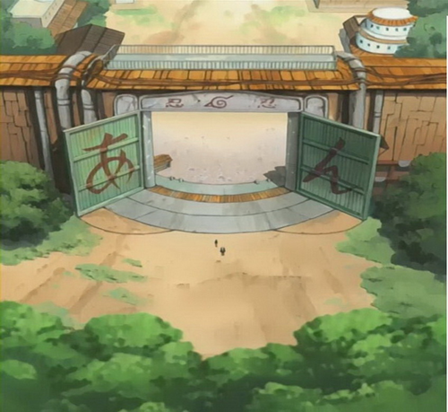 Когда мы встретились около колоссальных «Врат Конохагакуре», внушительные зелёные двери были открыты нараспашку.