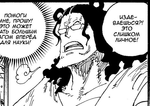 — Оставьте нас. — О! Видать Кобра уже прошерстил королевскую библиотеку. Хотя думаю он и так всю информацию знает. Просто он и так больной был в актуальных событиях манги, поэтому наверное и решил спросить у правительства запрещённую информацию про пустой век. Уже готов был уйти на покой, хех.