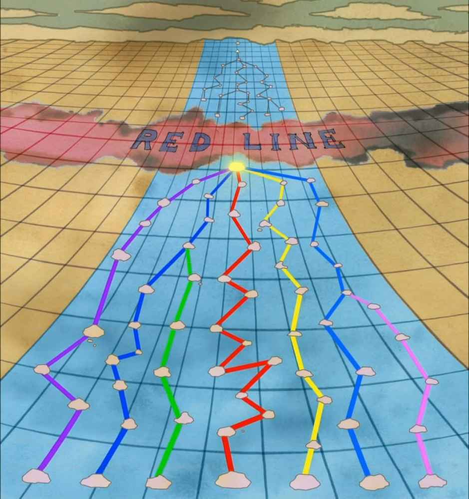 Тем временем, на горизонте стал виден монументальный пейзаж. Ред-Лайн…