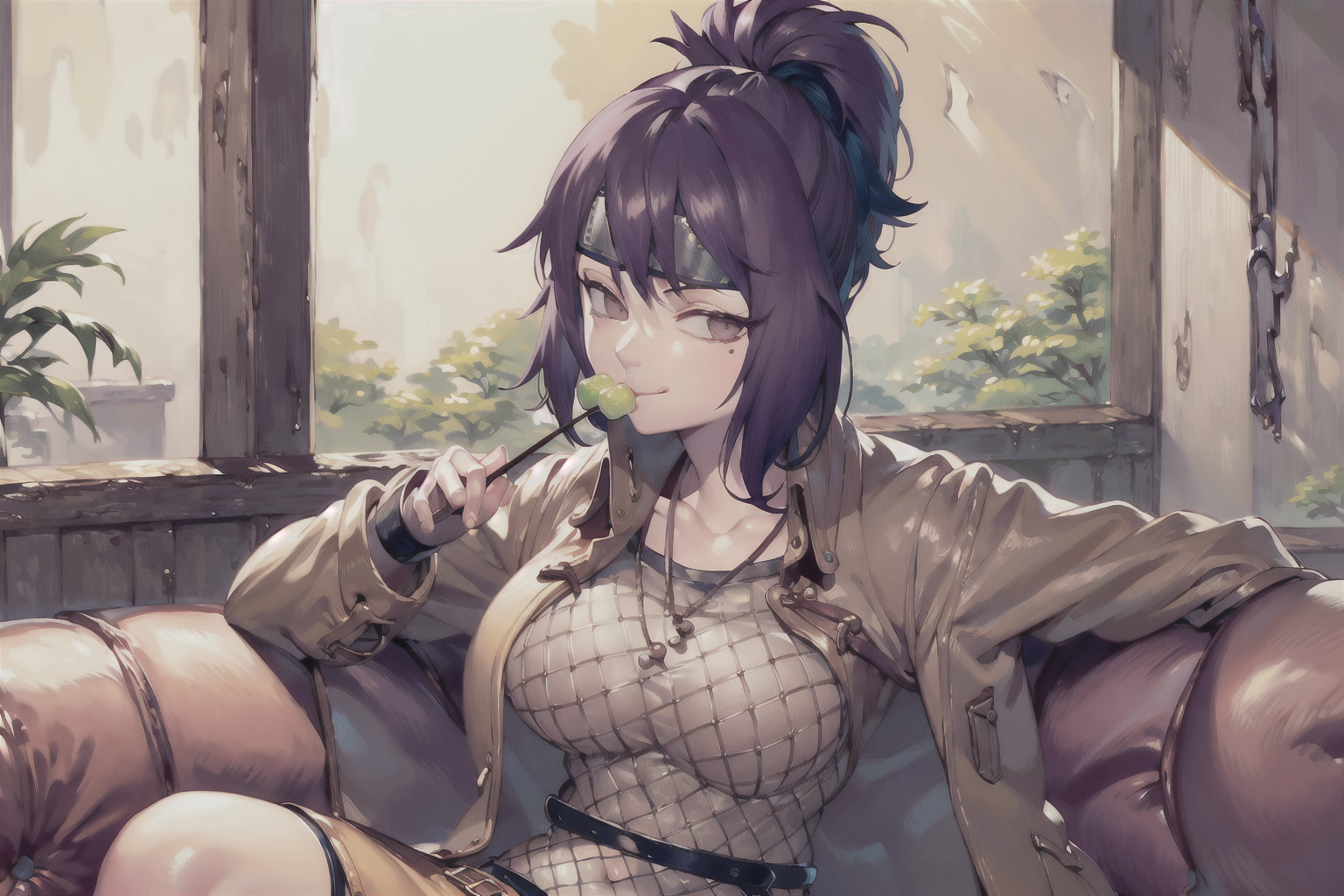 После я сбросил пальто с плеч Митараши и нагнул куноичи раком к полу. Ниже пояса она оказалась практически беззащитна. Небольшие сетчатые шортики было легко разорваны мной.
