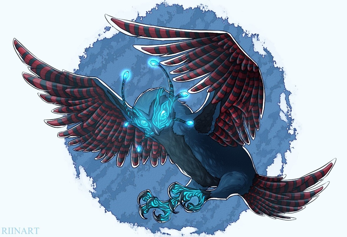 Собрались во едино крохи тумана, слившись в снежные потоки, а те, петляя и кружа, устремились к одной точке, где и появилась она. Огромных размеров снежная сова, что взмах её крыльев был сопоставим с размахом плеч Будды, с чьих пёрышек непрерывно сыпался блестящий снег, и из пуха которой лилась холодная дымка. Морозный рисунок на когтях и на мордочке придавал ей мистический вид, ведь налит он был нежным светом, каким светились и глаза чудовища, и даже усики, что словно шесть непослушных пёрышек торчали во все стороны, обрамляя её морду.