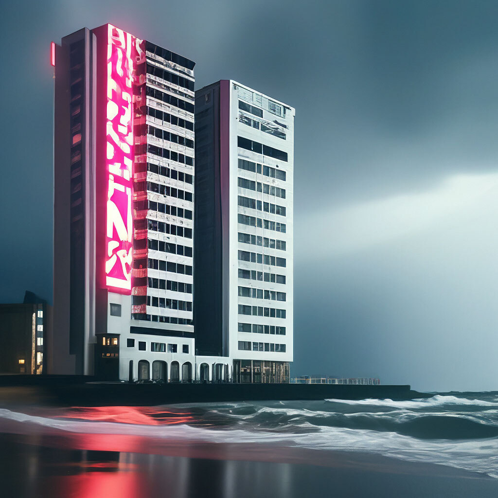 На наших глазах утопающий в грязи проулок рядом со ржавый горожами и серыми, пятиэтажными хрущëвками стал преобразовываться в песчаный берег бушующего моря, в отдалении от которого высилось здание курортного отеля.