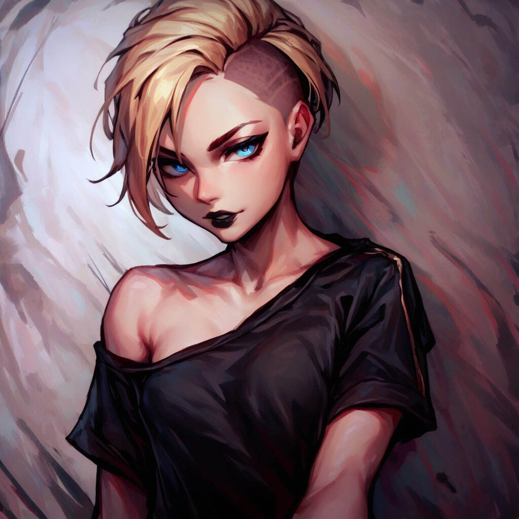 Хелен Арк во всём своём великолепии. Чёрный расстёгнутый бомбер, явно больше нужного размера, футболка, сползающего с одного плеча — под которой, судя по тому, что я вижу, ничего нет — короткая кожаная мини-юбка и сетчатые чулки.