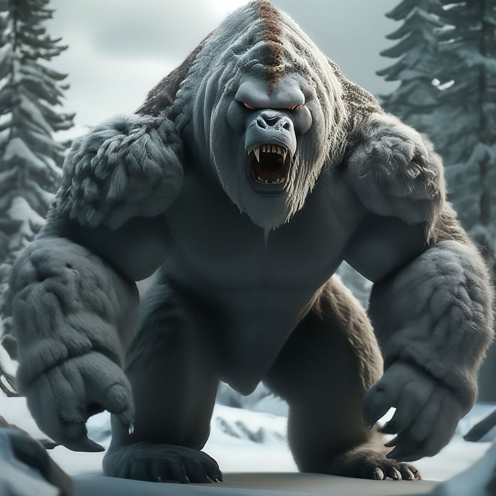 Но было уже поздно. Ачквал резко вскинул лук и рванул в сторону от Алексея. В тот же миг с верхушки дерева на тропу спрыгнул монстр, который напоминал помесь гориллы и медведя. Огромная тварь весом не меньше полтонны преградила им путь. Покрытый чёрной густой шерстью местный представитель фауны стоял перед двумя людьми. Гора мышц под густой шерстью своим видом вызывала страх. Глаза на огромной голове, наполненные злобой, смотрели прямиком на «небожителя». Из пасти, украшенной четырьмя парами огромных клыков размером не меньше десяти сантиметров, вырвался грозный рык, от которого у землянина заложило уши.
