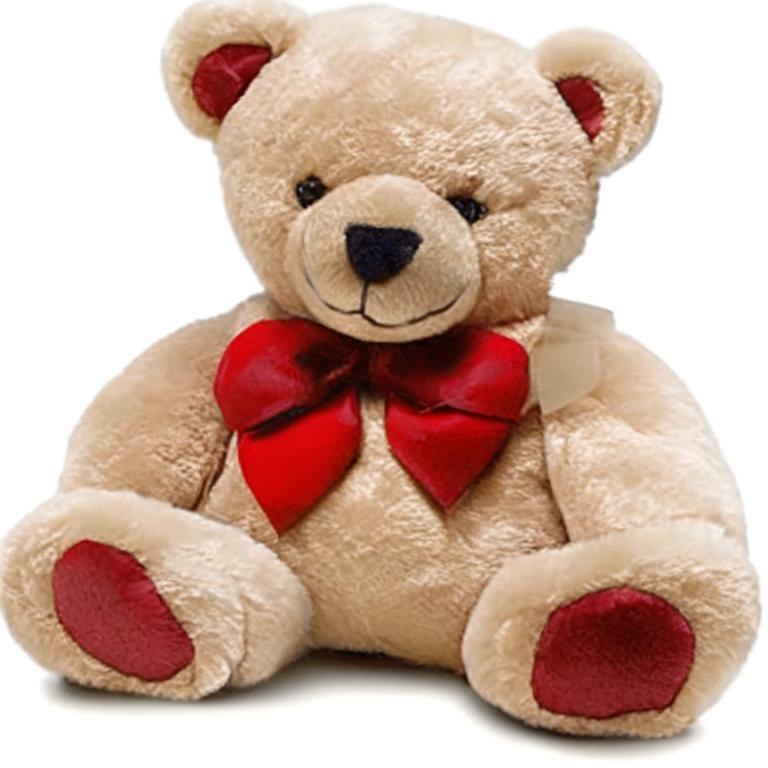 Наконец, из коробки появился плюшевый медведь белого цвета и с розовым сердцем в руках.