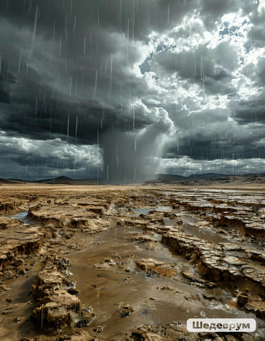 Небо заволокло тучами, что в Великой пустыне обычно случается раз в никогда. Вода хлынула вниз, будто над пустыней вылили ведро размером с материк. Смотрелось красиво и ужасающе.