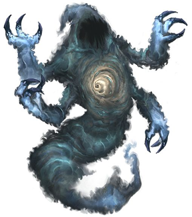 Сперва моё тело покрылось полупрозрачной дымкой — так выглядит подселение в него стихийного духа, дающего возможность проходить сквозь предметы и шанс, что физическая атака пройдёт сквозь моё тело… Очень сильная была бы вещь, если бы не тот факт, что на заклинания и умения она не работает. Только на физику. Но это не важно… важно здесь пробуждение. Ведь как только я активировал его, дымка тут же углубилась, усилилась. В считанные мгновения я сам стал этой дымкой — четырёхрукое грозовое облачко с когтями-молниями, вытянутым “хвостом” вместо ног, провалом в черноту вместо лица и искрящей спиралью в груди, что будто уходила куда-то в моё тело. Око Бури. В размерах, кажется, я даже сравнился с исполином! По крайней мере, роста мы стали примерно одного… или это из-за пассивного эффекта полёта?