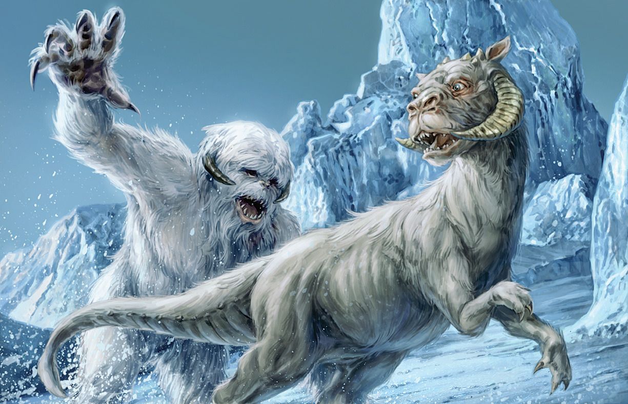 Какой только живности, желающей сожрать всего такого тёпленького меня, не было в этом ледяном мире. В первую очередь опасность составляли вампа — плотоядные, трёхметровые хищники, покрытые густым белым мехом, весом примерно сто пятьдесят килограмм. Эти полу-разумные твари передвигались на задних лапах, а переднюю пару использовали для атаки. Острые когти, способные разрезать лёд, хорошо защищающие череп роговые наросты, внушительная пасть с иглоподобными зубами, острое обоняние, недюжинная физическая сила, а самое хреновое — плотный белый мех, идеально сливающийся с местностью, и ядовитые железы в пасти, в совокупности делали из этих тварей практически идеальных охотников для условий Реккиада. Благо, что они не охотятся стаями, а предпочитают действовать соло. А ещё эти мутные вампы не преследуют… Неожиданное нападение, один-два удара мощной когтистой лапой и всё, приятного аппетита так сказать. Если противник оказался вёртким и шустрым, то они не кидались в погоню, а предпочитали отступить.