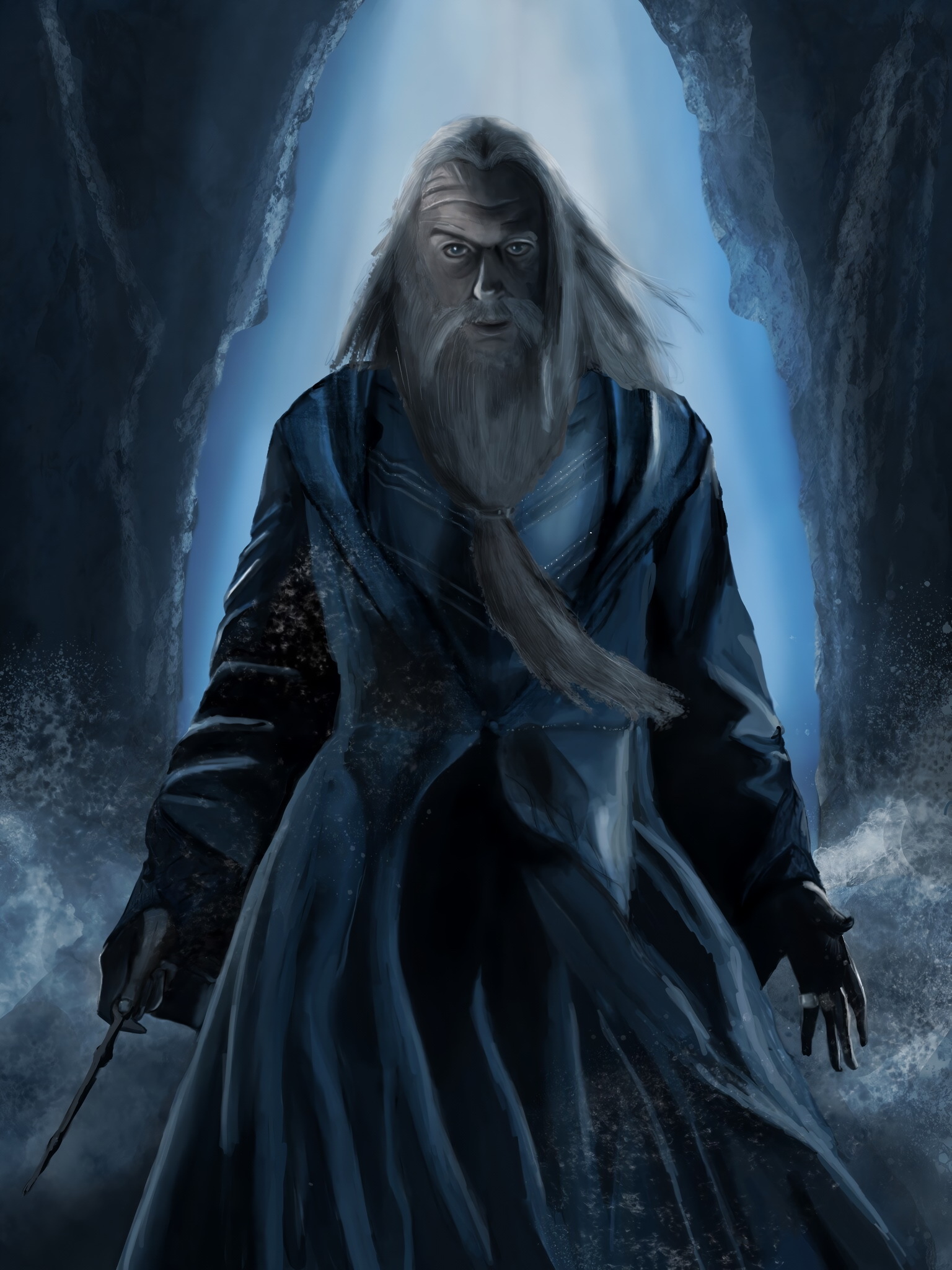 Впрочем, накал событий ни капельки не спал. Дамблдор не обращая внимание на Крауча повернулся обратно к Поттеру, не убирая далеко палочку, держа её правой рукой за рукоятку, а левой, аккуратно за кончик.