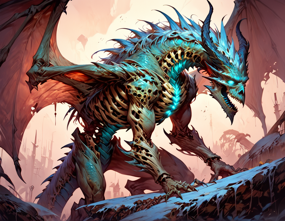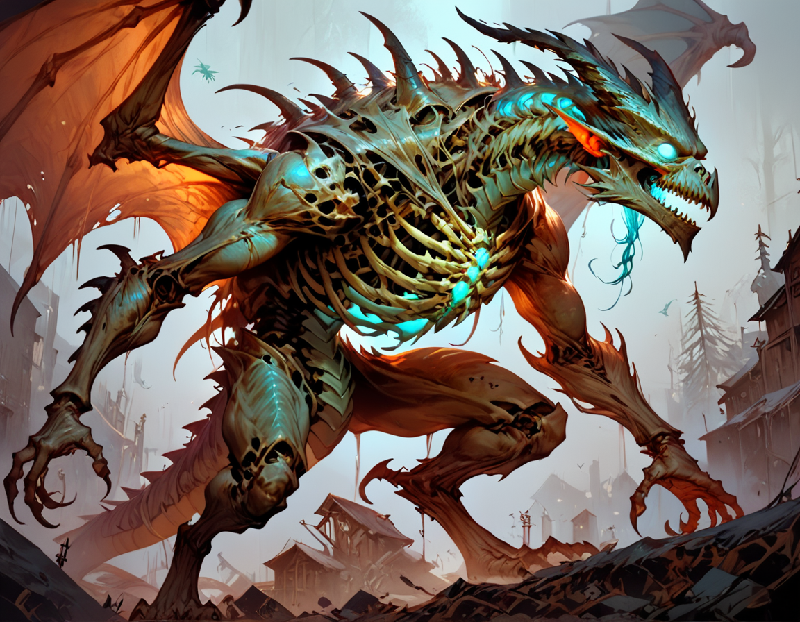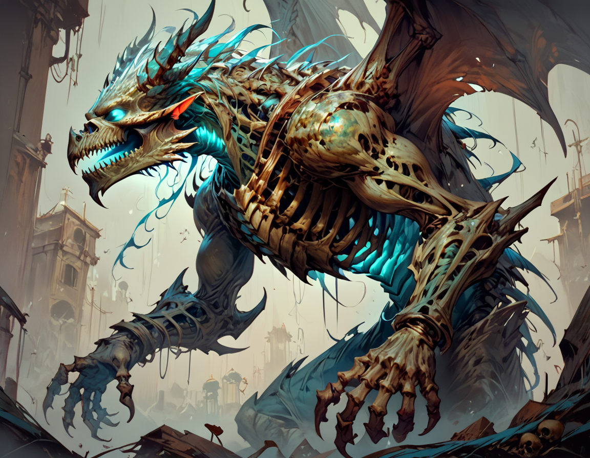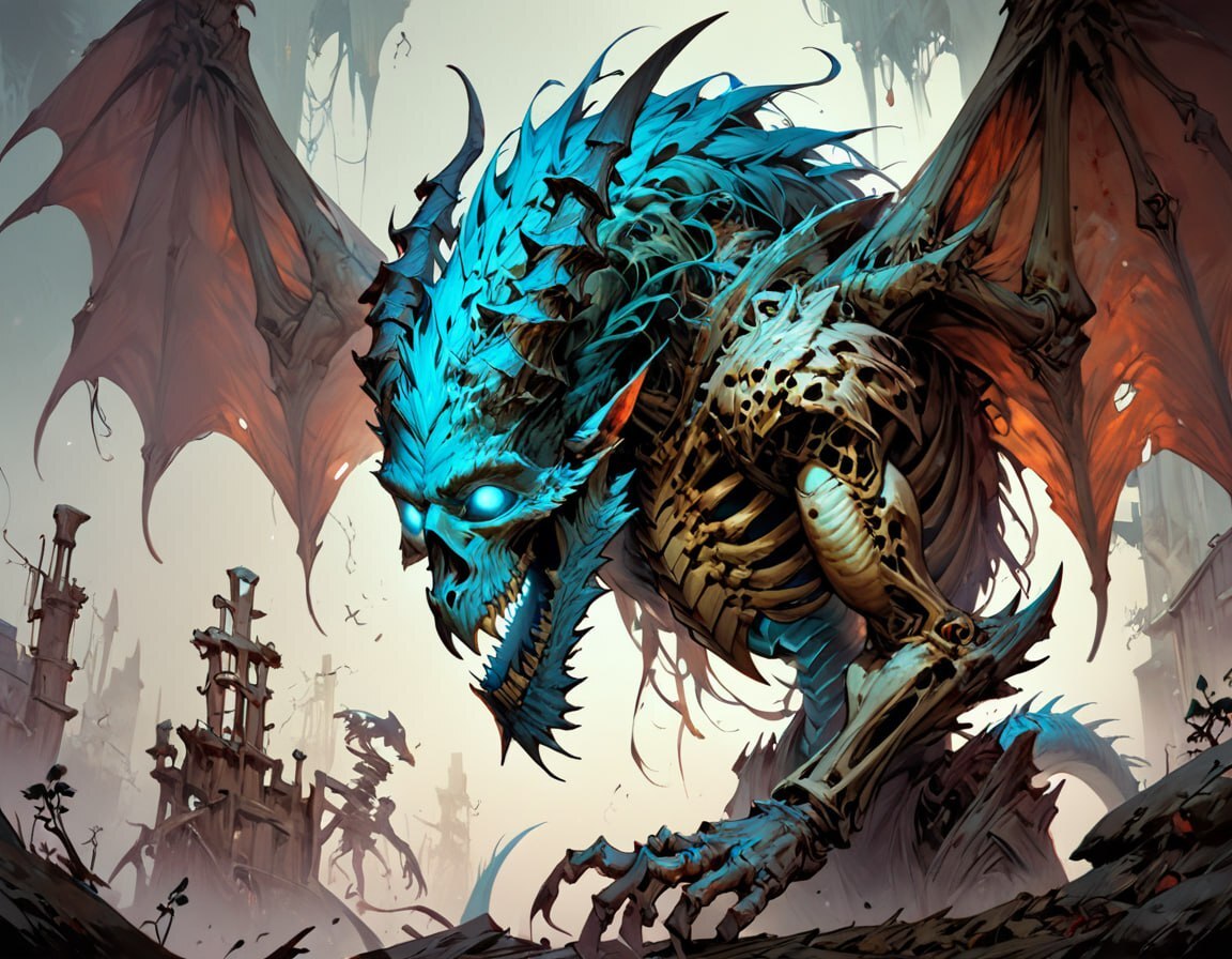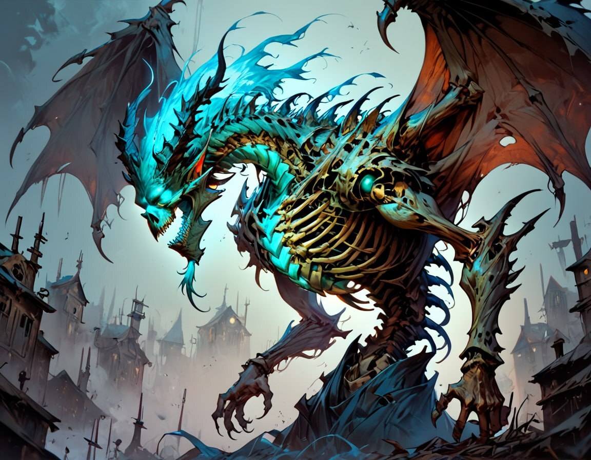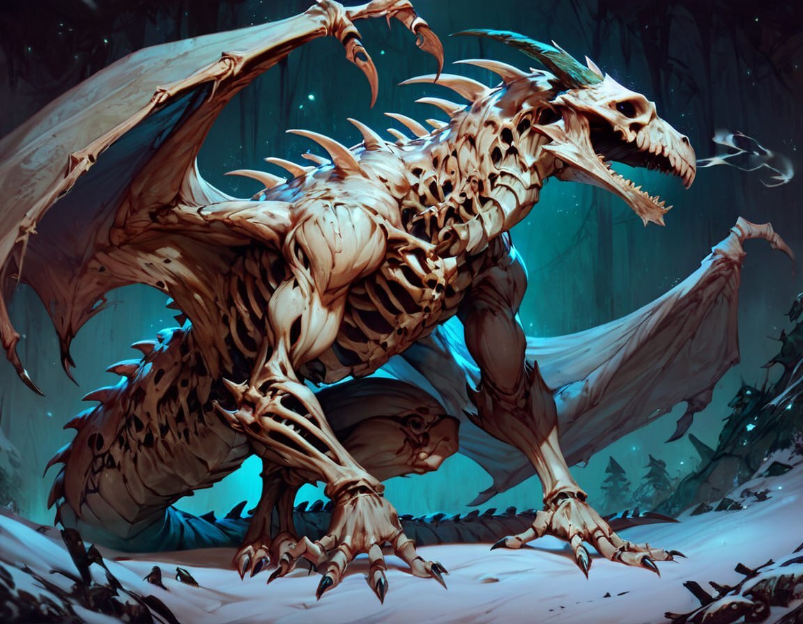 Это костяное чудо, состояло из нескольких своих собратьев — были видны несколько приделанных голов и конечностей к основному туловищу, в следствии чего оно не только было в несколько раз больше и увесистее — во время стремительного приближение ко мне словно несущийся паровоз, под его поступью проминался метал корабля, но так же гораздо крепче и физически мощнее до сели встреченных мне драконов.