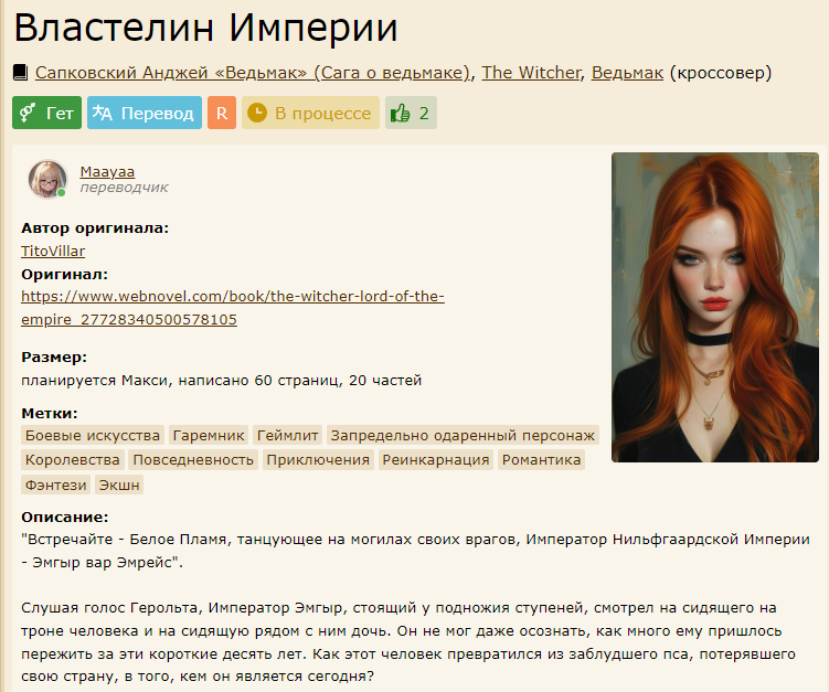 Вот вам и фэндом Ведьмака, что-то тут отдачи вообще никакой, хотя история вроде как интересная, а жаль🫠