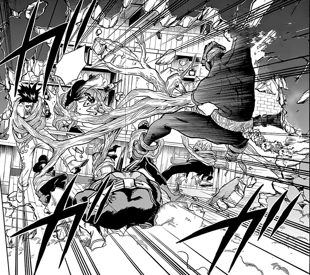 — Может, потому что ты не можешь двигаться? — ляпнул злодей с обгорелым лицом. Вроде это брательник моего одноклассника Тодороки? Ничего дельного собой он не представляет, хотя причуда — что надо.