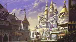 Массивное белое здание, с отходящими башнями с фиолетовыми крышами, от которых исходят другие башни, из которых выделяются две, расположенные на примерно противоположных концах замка. Башни украшены множеством мелких деталей, от золотого покроя концов крыш, до нескольких узоров или витражей с историческими изображениями. За замком, да и вокруг было расположено множество торговых точек, либо удобные и эксклюзивные коттеджи для знати, рабочих, либо учебные лагеря стражи.