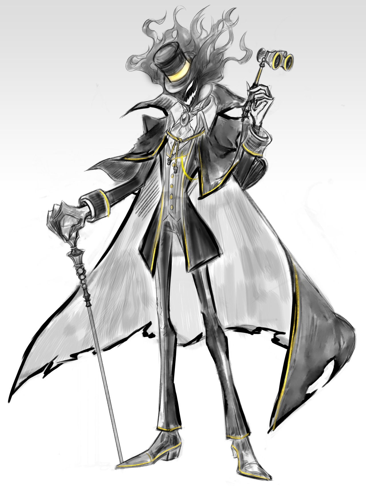 — Хм… — Вильям для виду постучал по щеке маски, отводя взгляд в сторону. Их окружала пустая улица, где лишь некоторые особо смелые Грешники выглядывали из укрытий, буквально одним глазком. — Тогда предлагаю следующее. — разок крутанув тростью, ударив ей по каменной кладке, Вильям вальяжно опёрся на ту двумя руками.