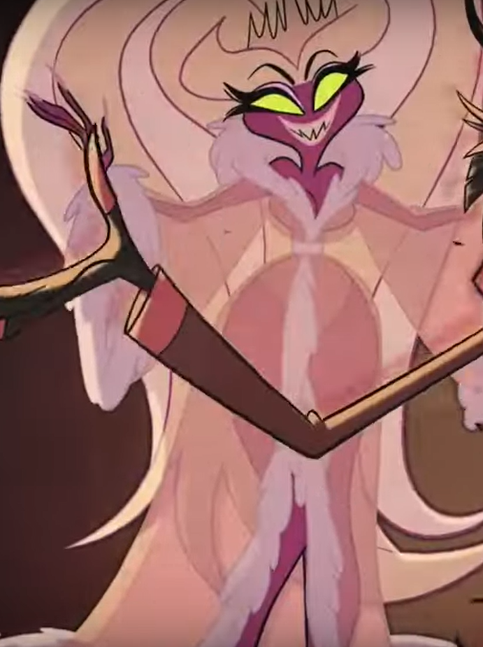 Прекрасное серое платье с белым мехом у груди прекрасно подходило к её серой коже, с мелкими белыми точками на ней, словно жемчужины, рассыпанные на дне океана. Золотая побрякушка, обхватывающая всю шею как ошейник, серьги-палки или как-там их. Прекрасно уложенные ресницы и подведённые чёрной помадой губы.