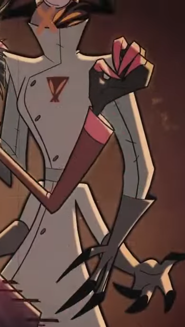 Белый халат с высоким воротником. Две пары рук с перчатками, с отверстиями для длинных чёрных когтей. Рога похожи на те, что были у Дукласа, только значительно меньше, чёрные и повёрнутые наверх.