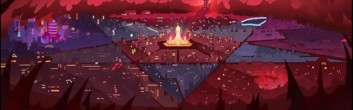 Госпожи, что сейчас стояла, смотря в большое окно, на вид Пентаграмм-сити, который почти полностью открывается с этого места.