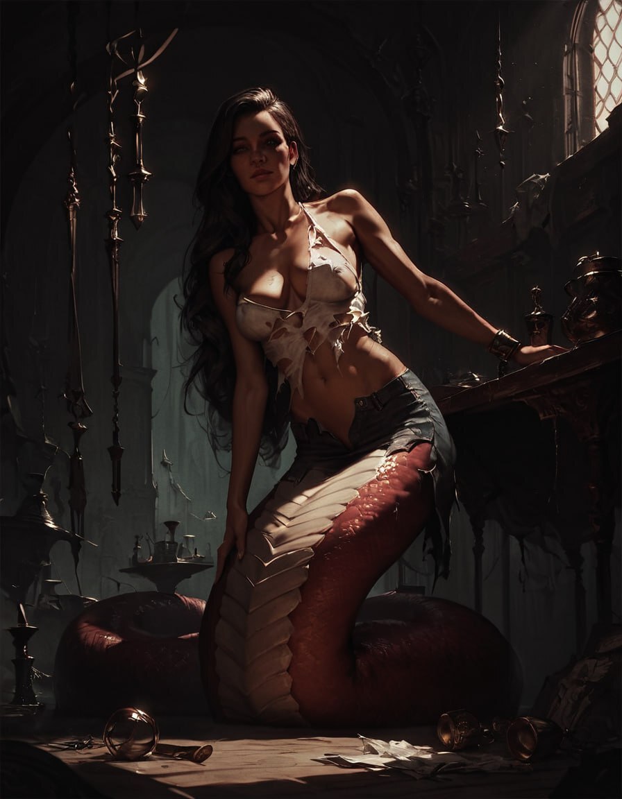 Сделав неспешные потягушки, дабы взбодрить своё вялое тело, после продолжительных ласк и мягкой постели, я побрел к плененным Кри — которые мирно спали, чтобы выбрать свою первую самку для спаривания, так как мне сейчас было лень идти наружу и формировать новое гнездо. После тщательного осмотра, мой выбор пал на одну непримечательную девушку, у которой была хорошо развитая мускулатура. Мой выбор обусловлен тем, что я немного побаиваюсь раздавить других, более хрупких девушек, всё же, это моё первое спаривания. Рывкнув на Амаке, дабы она разбудила Кри, я начал медленно её освобождать, как вдруг, я унюхал странный запах, исходящий от тела девушки. Фыркнув от приторного запаха, а после полностью освободив девушку из слизи, и положив её на пол, наблюдая краем глаза, как потешно на потолок уползает Амаке, я решил к ней принюхаться, дабы понять, откуда исходит этот заманчивый запах. Начав с головы и медленно двигаясь вниз, постепенно раздевая эту юную деву, и лицезрея её красивое, подтянутое и фигуристое тело, я смог отыскать источник запаха, а после, наверное, с десяток раз очень громко чихнул.