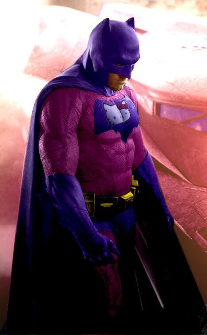 Выглядел супергерой действительно немного непривычно. Фиолетовая маска, плавно переходящая в такого же цвета плащ, фиолетовые трусы, перчатки, сапоги и символ на груди, который дополнила эмблема «Hello Kitty», ну а оставшаяся часть костюма окрасилась в прикольный розово-пурпурный цвет. Я только цвет легендарного желтого пояса не стал менять, уловив от него слабые эманации маны.