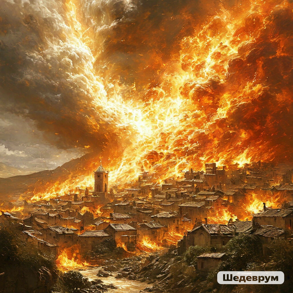 — Ладно. Поиграли и хватит. Огненная геенна, — выдохнул я, своё мощнейшее заклинание, помимо Длани Шамаша разумеется. Это заклятие создает мощную волну белого пламени, что сжигает все на своем пути. Волна огня высотой более ста метров и длиной почти в километр испепеляющим шквалом прошла по деревне уничтожив её полностью. Огонь стихия буйная и контролю поддается с трудом. Даже мне, созданию частично рожденному в огне.