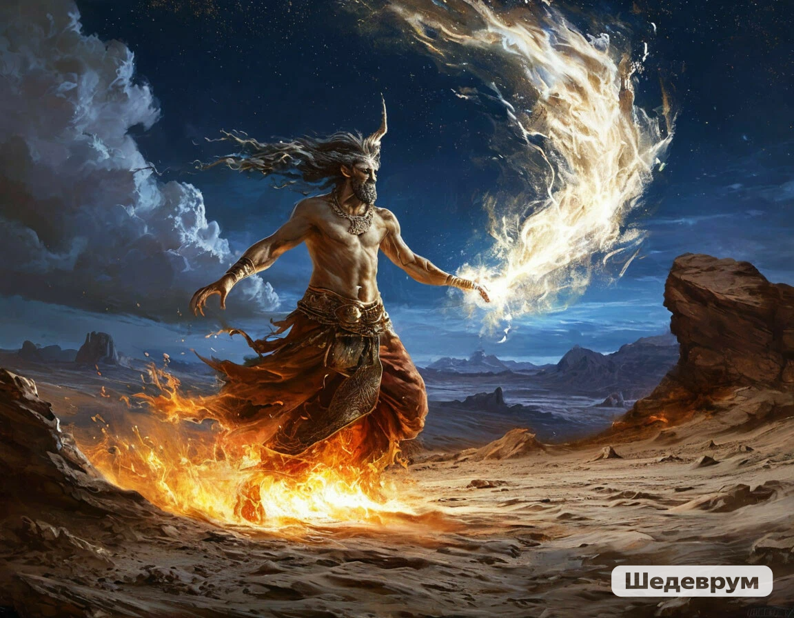 Оллап-тара сложила ладони вместе, дунула туда формируя что-то похожее на маленького человечка, сотканного из целого комка каких-то нитей разных цветов. Огненный вихрь тем временем становился все больше и больше наполняя иссушенное солнцем поле, плавя песок, камень и плоть. Человечек выпрыгнул из ладоней Оллап-тара и смело шагнул вперед к границе торнадо. Легкий взмах рукой и пламя будто ветром сдуло. Не понял?!