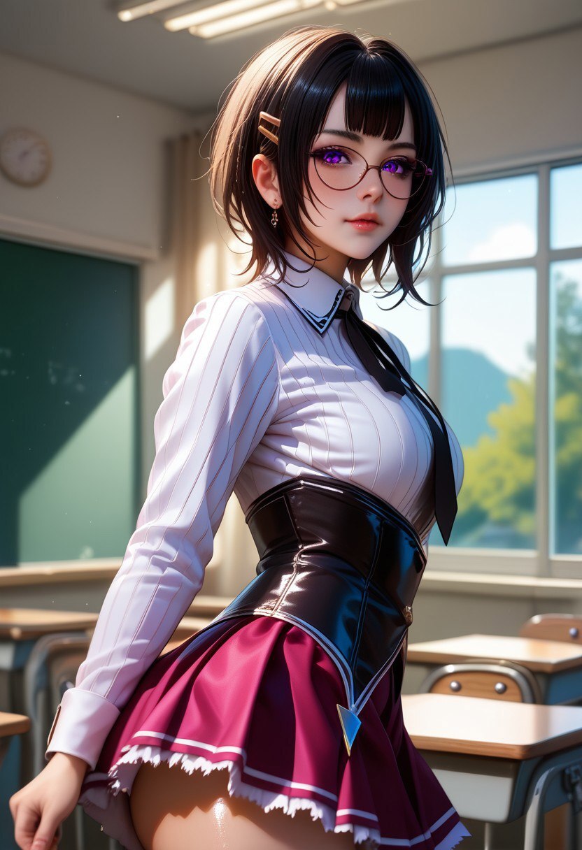 — О-о-о! — протянул этот фетишист, с жадностью осматривая фигуры обеих черноволосых красоток секретно-демонической природы. — Это важные персоны. Они — члены ученического совета и элита Академии. В общем, Сона Шитори2 — верхушка уч. совета и его глава. «Это во-о-он та девушка в очках», —сказал брат, указав рукой на среднего роста, с красивой подтянутой спортивной фигурой и умопомрачительными по своей стройности ножками, голубоглазую девушку с короткими волосами, уложенными волосок к волоску в строгую причёску-каре. А судя по внешнему виду, идеально выглядящей женской формы надетой на ней, девушку крайне педантичную по характеру.— а рядом стоит её зам — Цубаки Шинра. — рука брата переместилась на вторую девушку, которая была на пять-шесть сантиметров повыше своего «короля», с длинными, до талии, прямыми черными волосами и необычными глазами, левый — фиолетовый, а правый желтый. Красивое сочетание гетерохромии, которую она подчёркивала, как и Сона, стильными очками в металлической оправе. — Обе считаются одними из самых красивых девушек нашей Академии. Размеры…