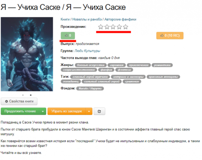 Я начал выкладывать фанфик Я — Учиха Саске , на рулейте.