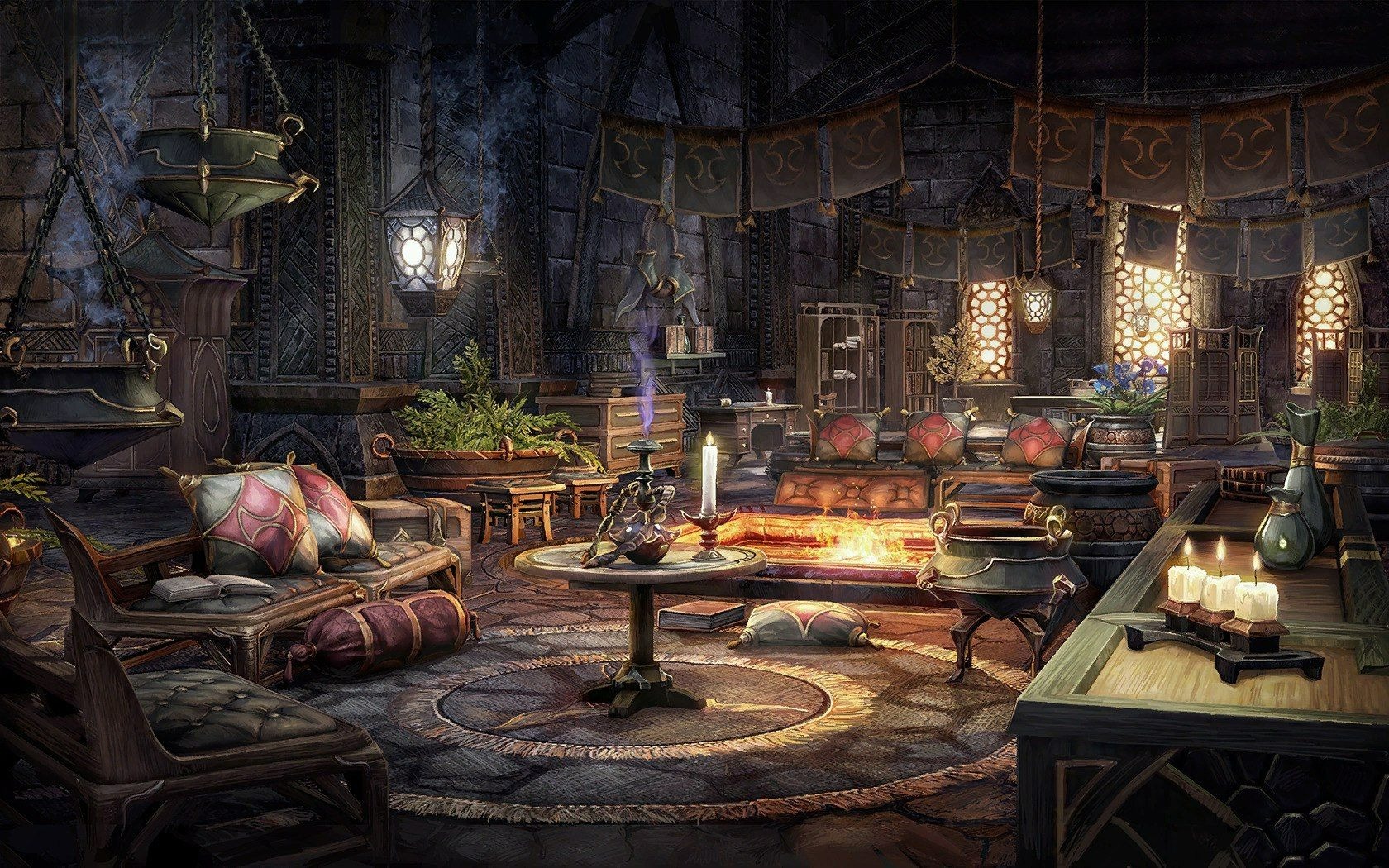 Внутри находился длинный коридор со множеством запертых дверей, миновав которые, мы оказались в просторной гостиной, оформленной в странном турецком стиле: низкие дивано-кресла с вышитым витиеватым орнаментом, зажжённые свечи в разных частях комнаты и это при наличии нормальной люстры, висящей под потолком, на чайном столике находилась курильница, испускающая тонкую фиолетовую струйку дыма. Одно слово: волшебно. Была даже небольшая белая пентаграмма в дальнем углу. Так, последняя деталь мне не особо нравится.