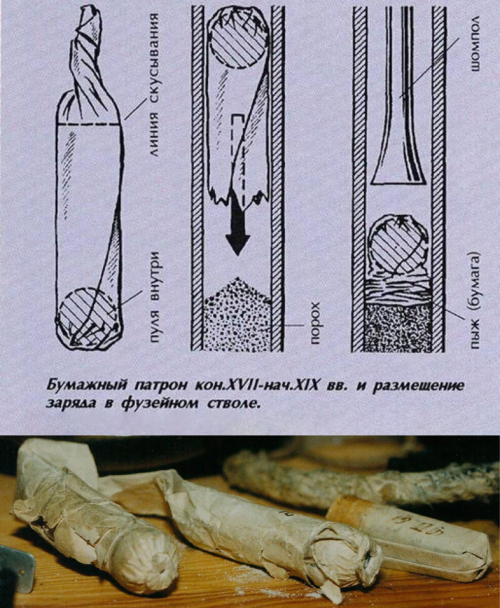 — Но как вою в бою нужное количество соблюсти?! — выступил Фёдор, демонстрируя небольшой сверток. — Мы придумали заранее отмеренный сверточек, где и пороха ровно столько сколько нужно и пуля. Заряжая до боя, вой может быстрее и надежней стрелять!