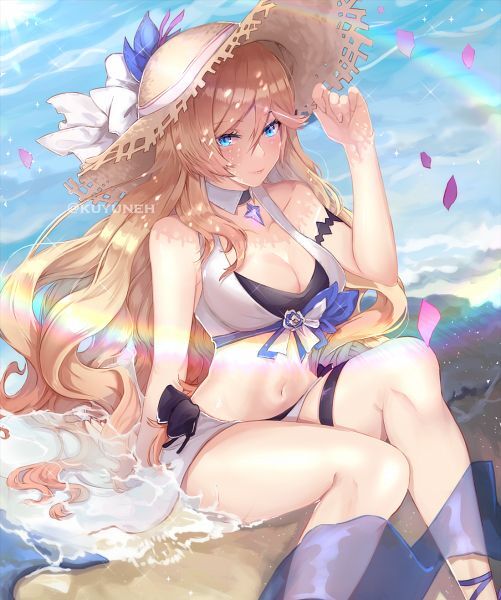 Бьянка же в это время сидела на пляже, около воды и о чем-то думала. Сама она была одета в какой-то пляжный костюм, а не купальник, по крайней мере по другому это не назовешь. На голове же у нее была большая шляпа.