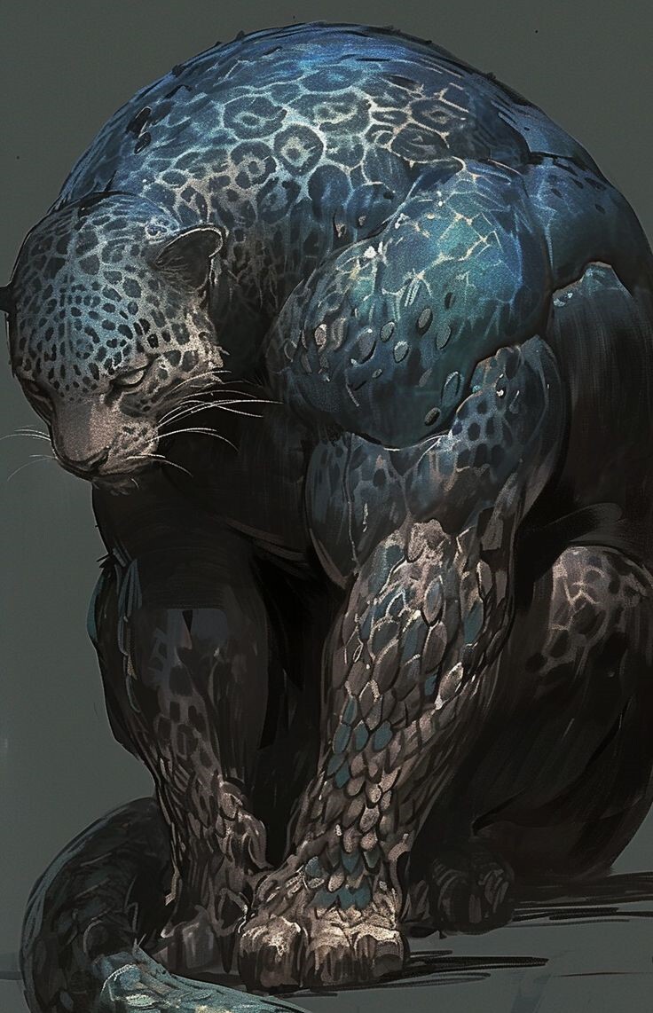 Монстр выглядел как перекачанный гепард, только в форме кошки. Его мех был голубоватого цвета с белыми и песчаными пятнами, которые нарастали к нижней части тела. Даже хвост у него казался больше, чем у обычного гепарда.