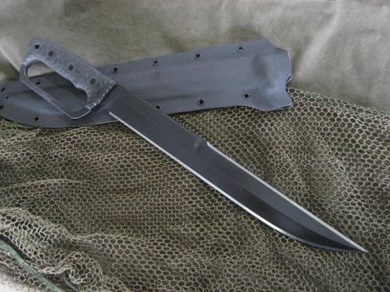 Почти белое лезвие контрастирует с черным цветом стали покрытой тонким слоем фосфата цинка.