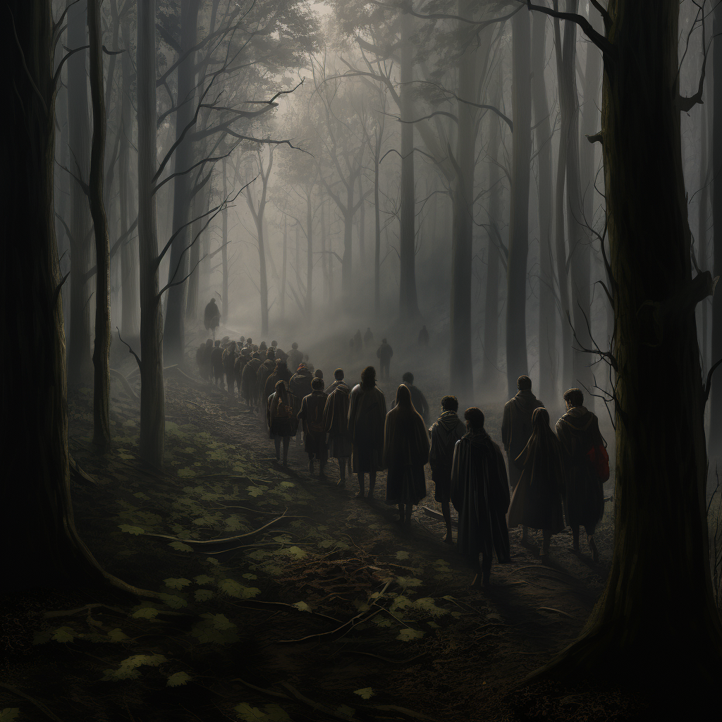 Путь был долгим и медленным, а пугаться треска веток я перестал уже спустя час времени, ибо надоело. Я просто шёл вперёд, в тупую пялясь на пятки ученика передо мной. Потому что никакими живописными видами этот лес похвастаться не мог. Мрачными, тёмными, страшными — это да, это пожалуйста.