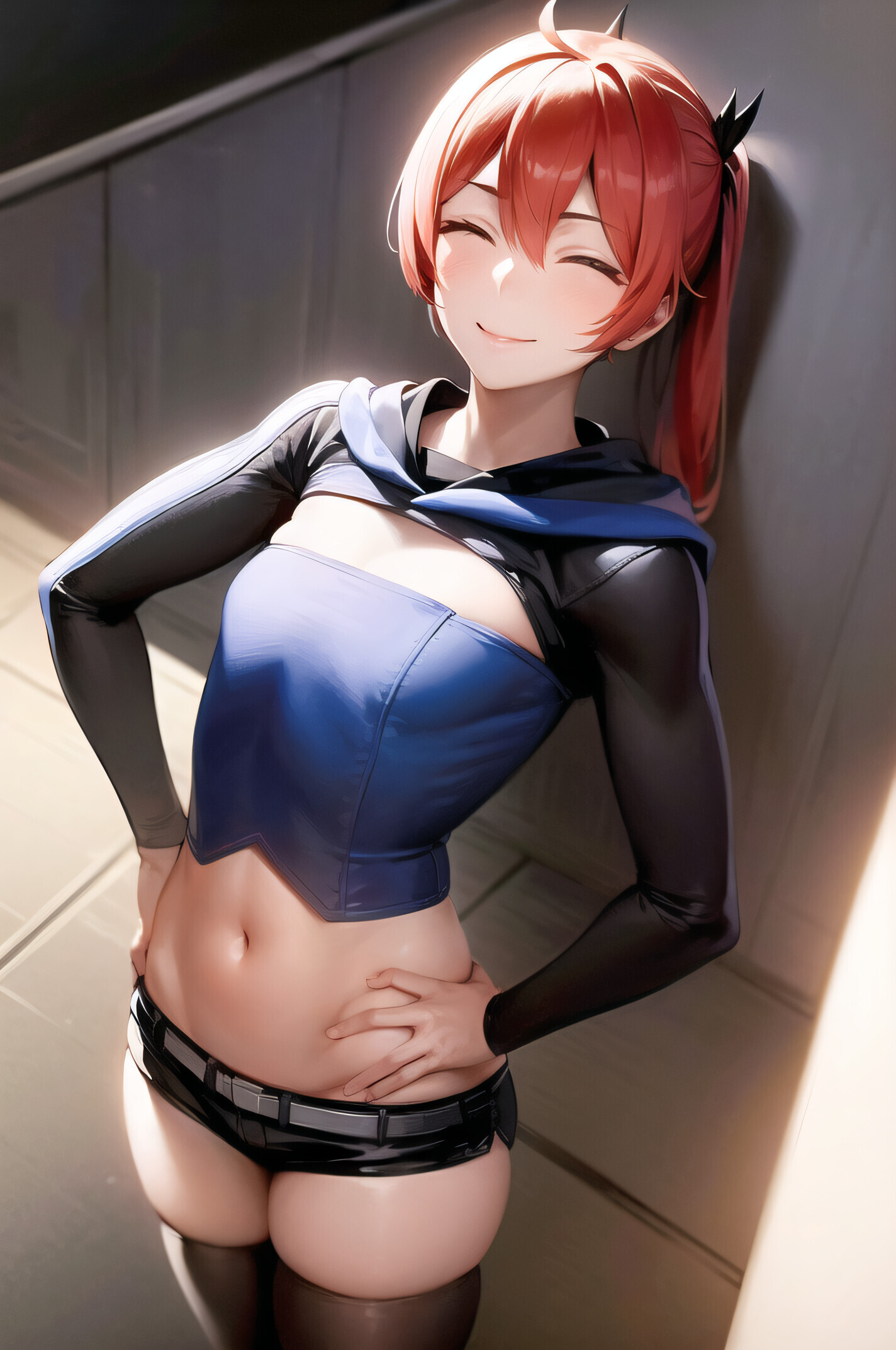 Это красноволосая плоскогрудая женщина с закрытыми глазами и хвостиком, одетая в одежду сорванца, состоящую из шорт и топика, демонстрирующего ее живот. Богиня семьи Локи, Локи.