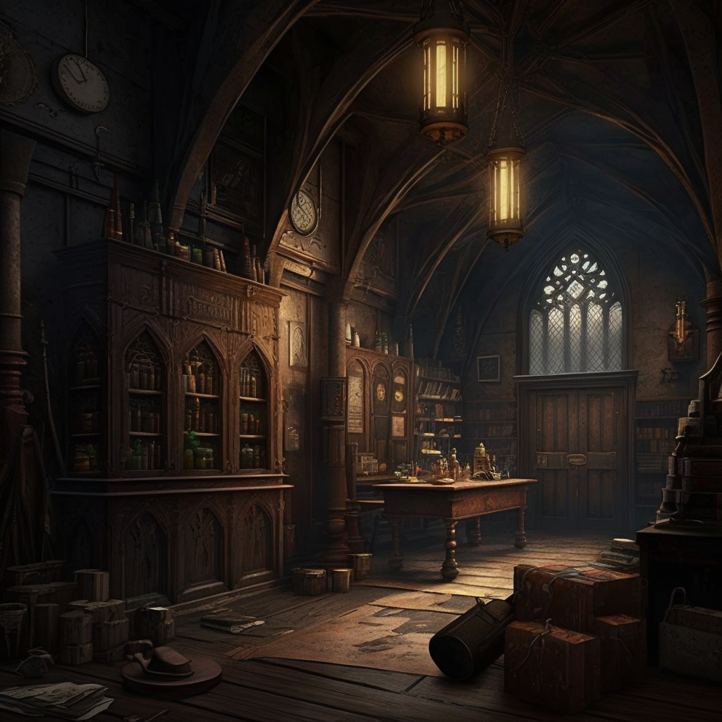 Всю левую сторону у стены помещения занимал протяженный широкий стол. На первой его части были расположены десять идентичных шкатулок, а перед каждой из них стояла чаша с какой-то жидкостью. Другая же часть умещала в себе стандартный набор для варки зелий с ложкой для помешиваний, весами, ступкой и прочими приблудами.