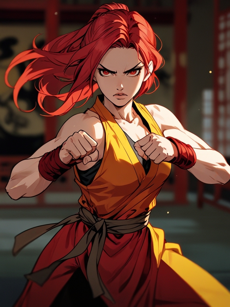 В центре помещения стояла высокая рыжеволосая девушка, возраст которой сложно было определить. Ей можно было дать от двадцати до сорока лет, но тяжёлый сухой и властный взгляд говорил о том, что она намного старше. Она выделялась алым одеянием с нашивкой в виде золотого феникса.